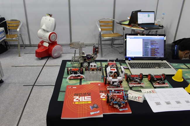 이번 전시회에서 더 레드 상상만들기는 코딩교육보드 기반의 장난감들을 선보이며 참관객들의 이목을 집중시켰다.