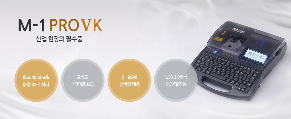 캐논 튜브넘버링기 모델 중에서 세계 최고의 인쇄 속도(초당 40㎜)를 자랑하는 ‘M-1 PRO VK’는 PC연결이 가능한 하이 그레이드 모델로서 내구성이 뛰어난 열전사 방식으로 라벨, 튜브, 기명판, 랩 어라운드 테이프 등에 고품질 인쇄가 가능하다.