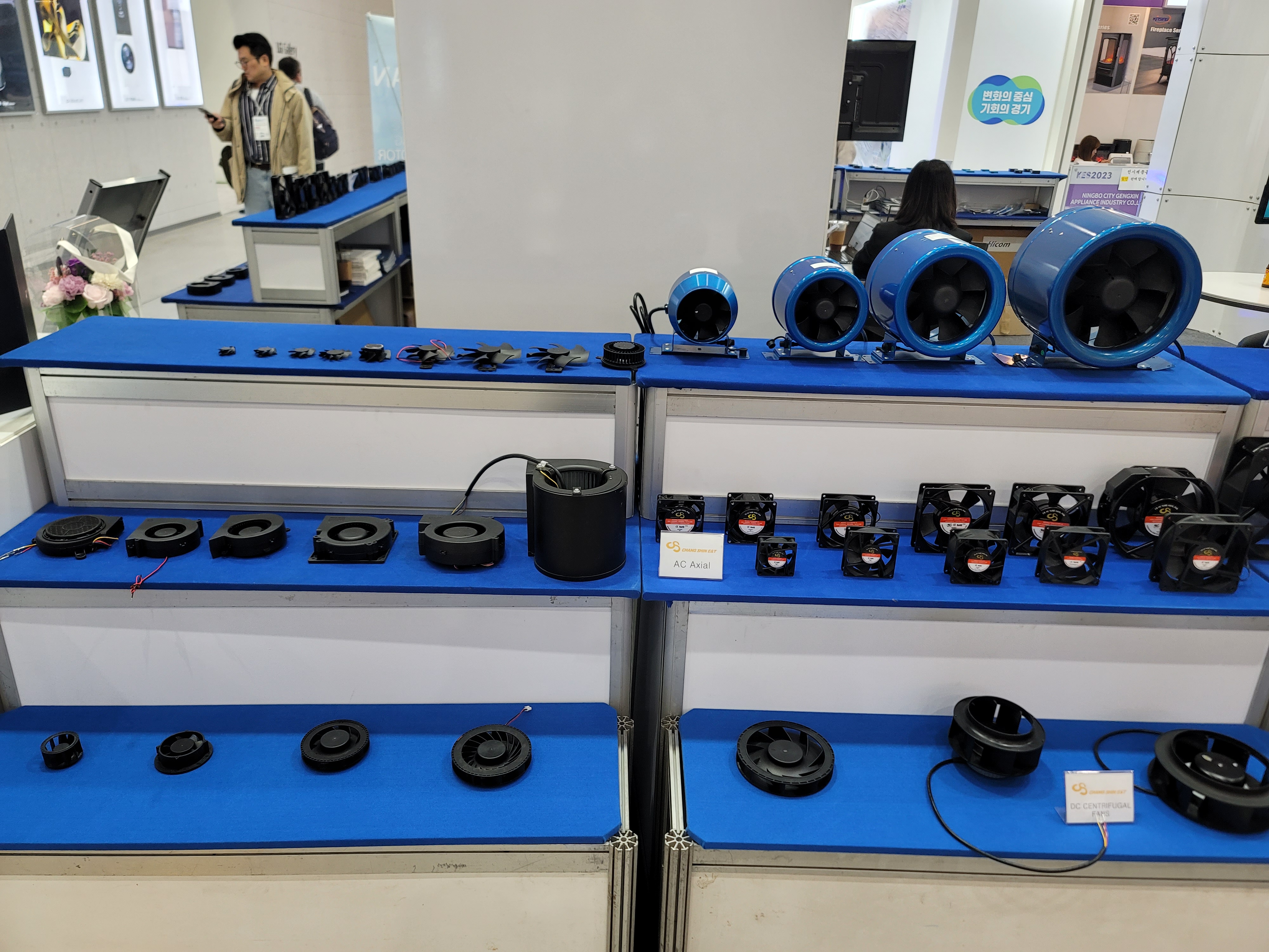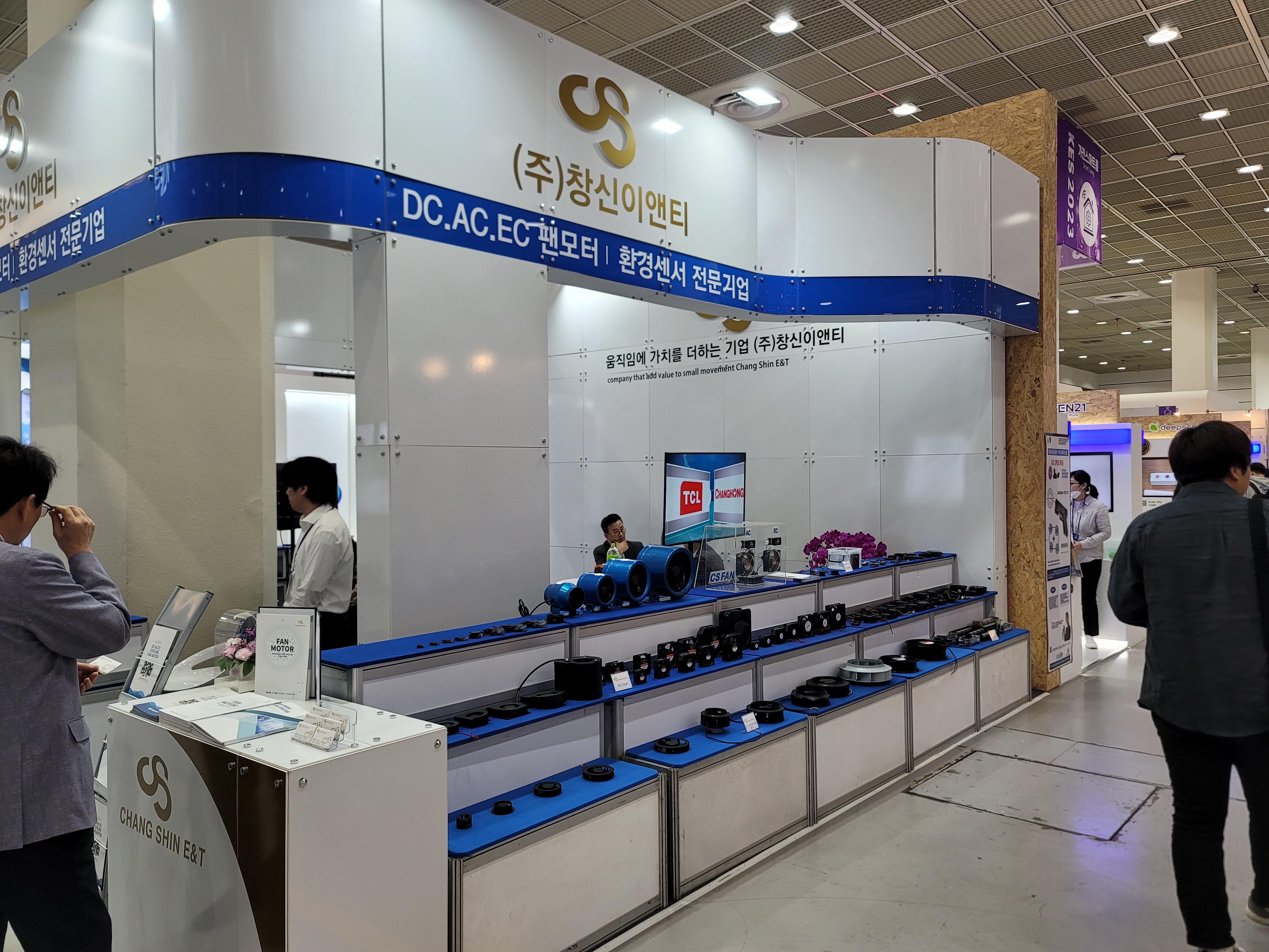 창신이앤티는 이번 전시회에 AC Axial FAN, DC CENTRIFUGAL FAN 등 다양한 AC, DC 용 팬모터를 선보였다. 해당 라인업은 건조/방열/배기/공기질 유지 관리에 탁월한 기능을 갖추고 있으며 기본 SPEC 외 고객사의 요청에 따라 주문제작이 가능한 장점이 있다. 또한 자체 기술로 개발 및 공급까지하여 빠른 시장 변화에 대응하고 있다.