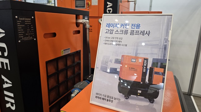 이날 전시회에서 에이스에어는 50마력 2단 압축 콤프레샤, 레이저 커팅 전용 콤프레샤 제품을 중심으로 참관객들에게 경쟁력 어필했다.
