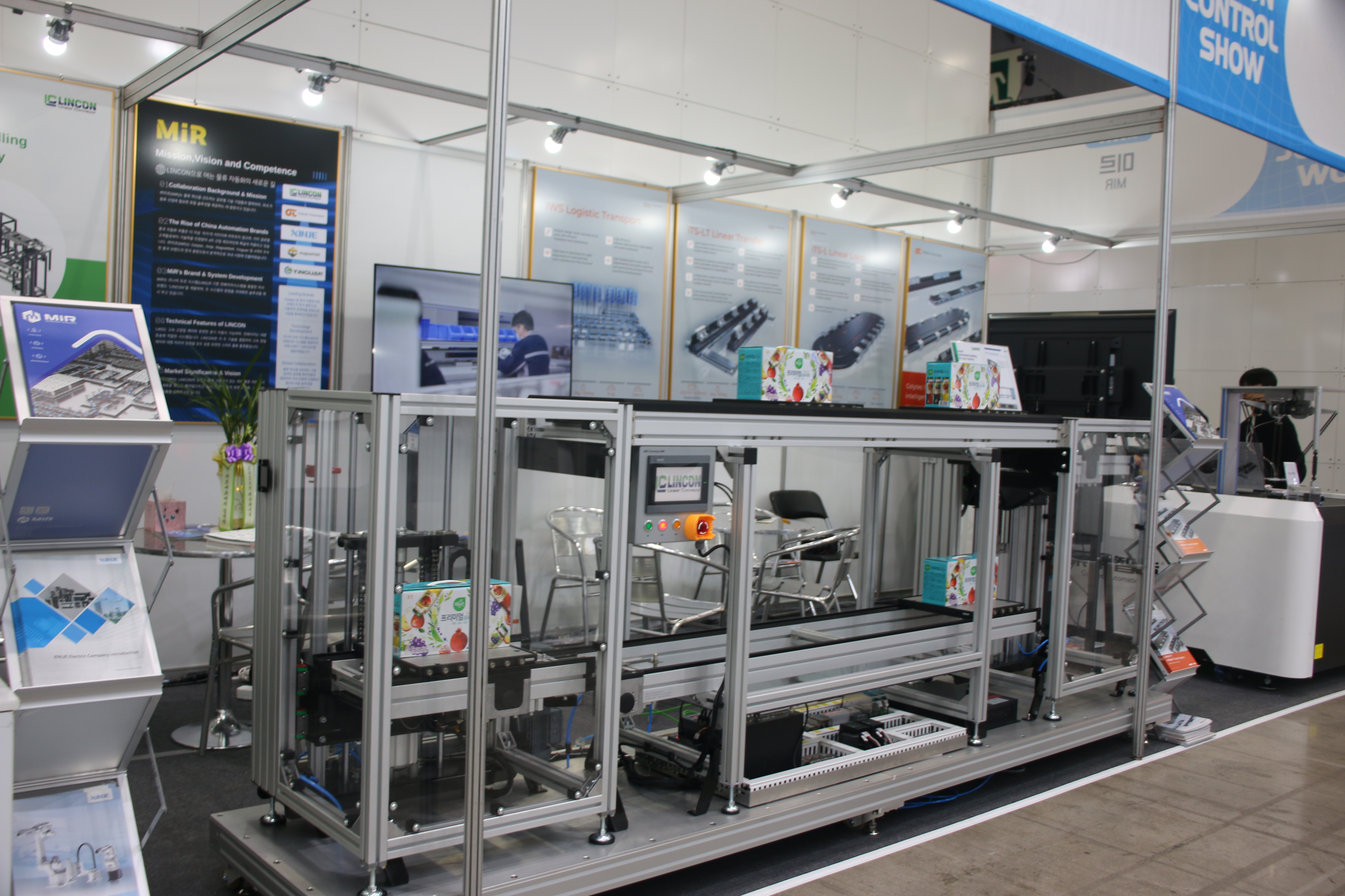 린컨(Linear Conveyor)은 골리텍(Golytec Automation) 사의 LMS와 기존 컨베이어 시스템을 융합한 미르 자체 브랜드다. LMS와 벨트 컨베이어, 파워롤러를 혼합해서 하이브리드 타입으로 국내 시장에 정식 런칭을 했다. 기존 컨베이어 시스템과 LMS의 장점을 극대화한 솔루션으로 이번 전시를 통해 국내시장에 처음 선을 보였다.