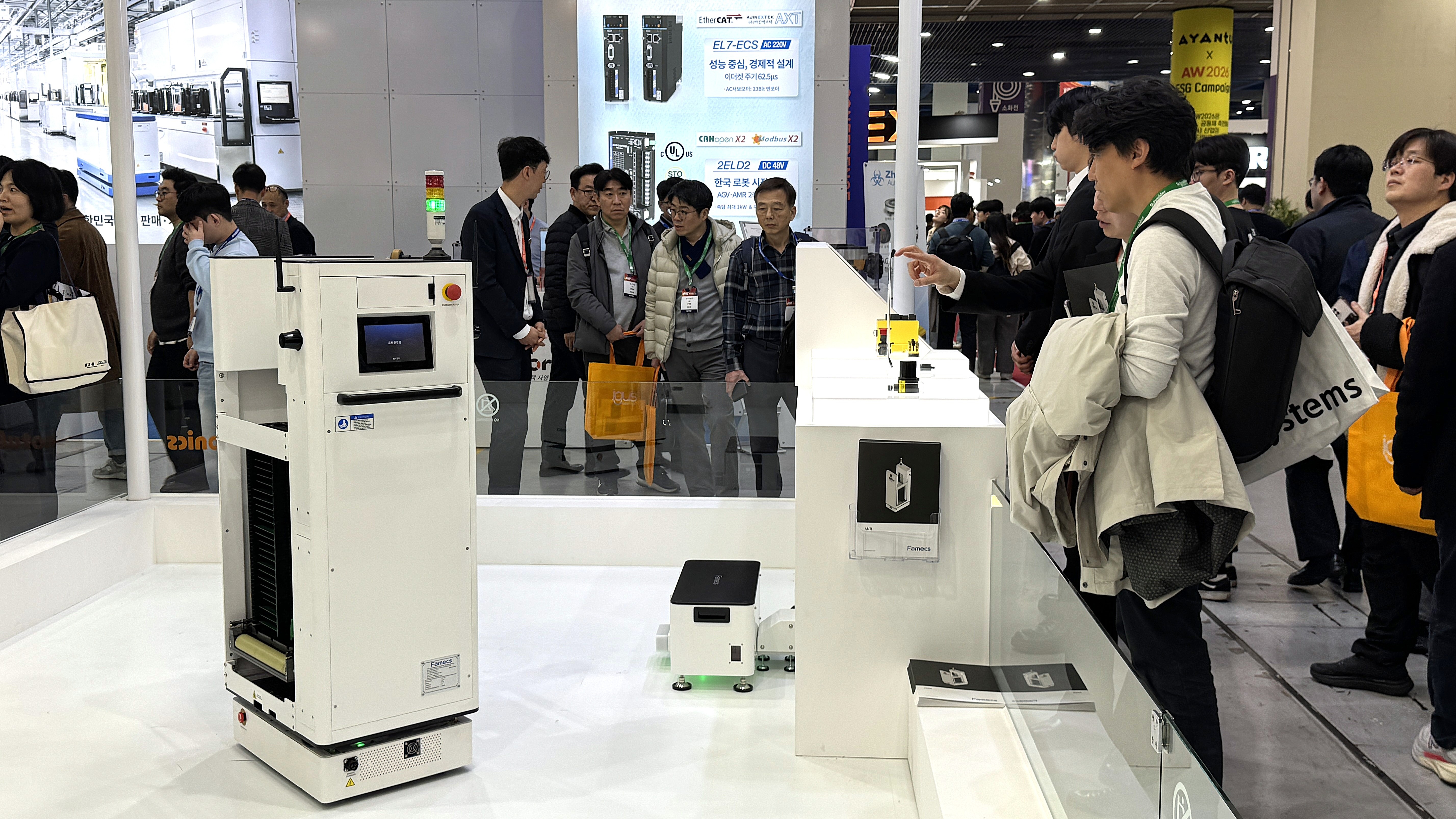 ▲ AW 2026 오토닉스 부스에 마련된 AMR 시연을 참관객들이 살펴보고 있다. (사진=오토닉스 제공)