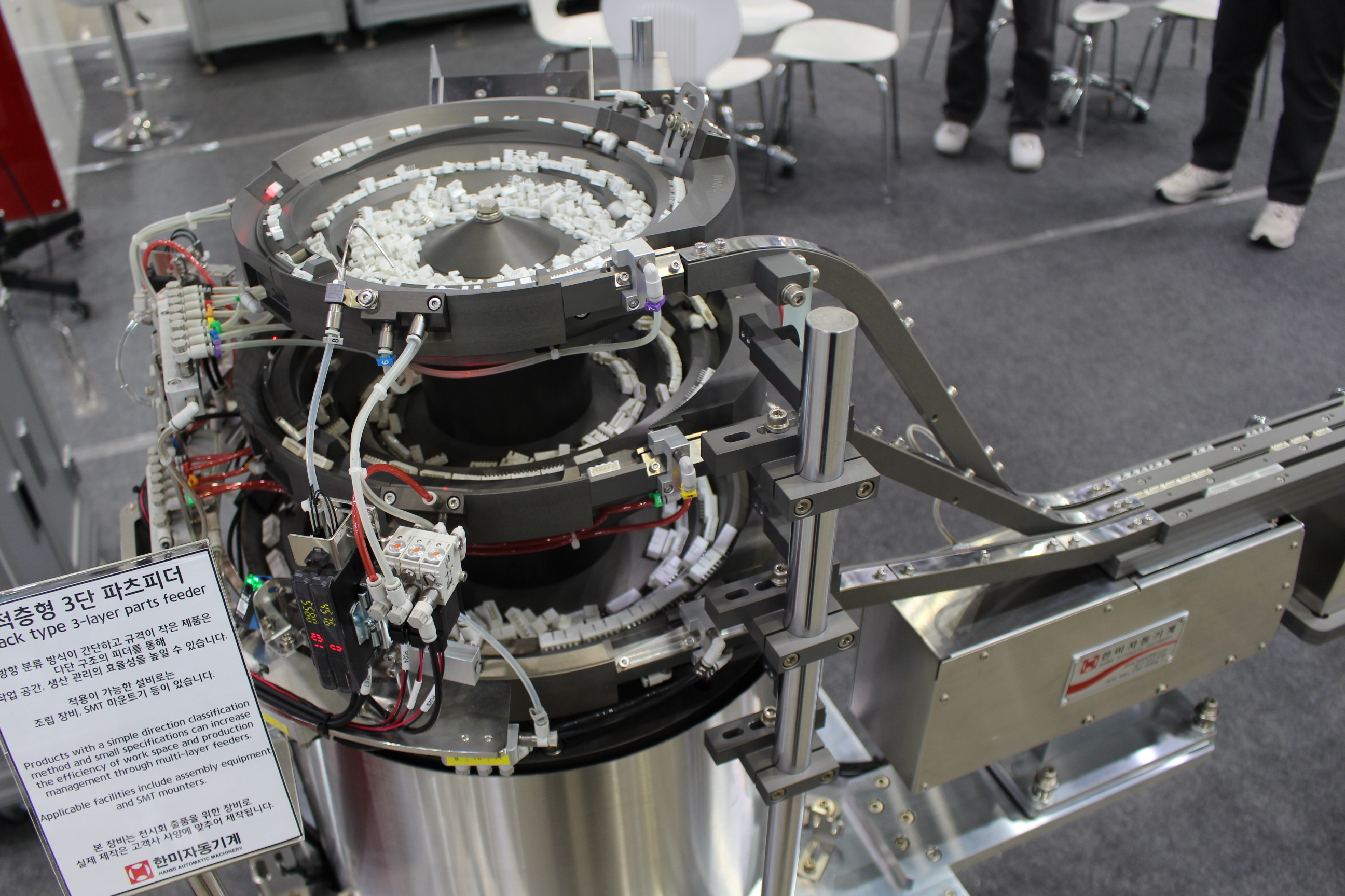 이번 전시회에서 한미자동기계는 부품 정렬 및 공급 자동화를 구현하는 파츠피더를 중심으로 다양한 자동화 설비를 공개했다. 파츠피더는 다양한 형태의 부품을 일정한 방향으로 정렬해 생산 라인에 공급하는 핵심 장비로, 조립 및 포장 공정의 자동화에 필수적인 역할을 수행한다.